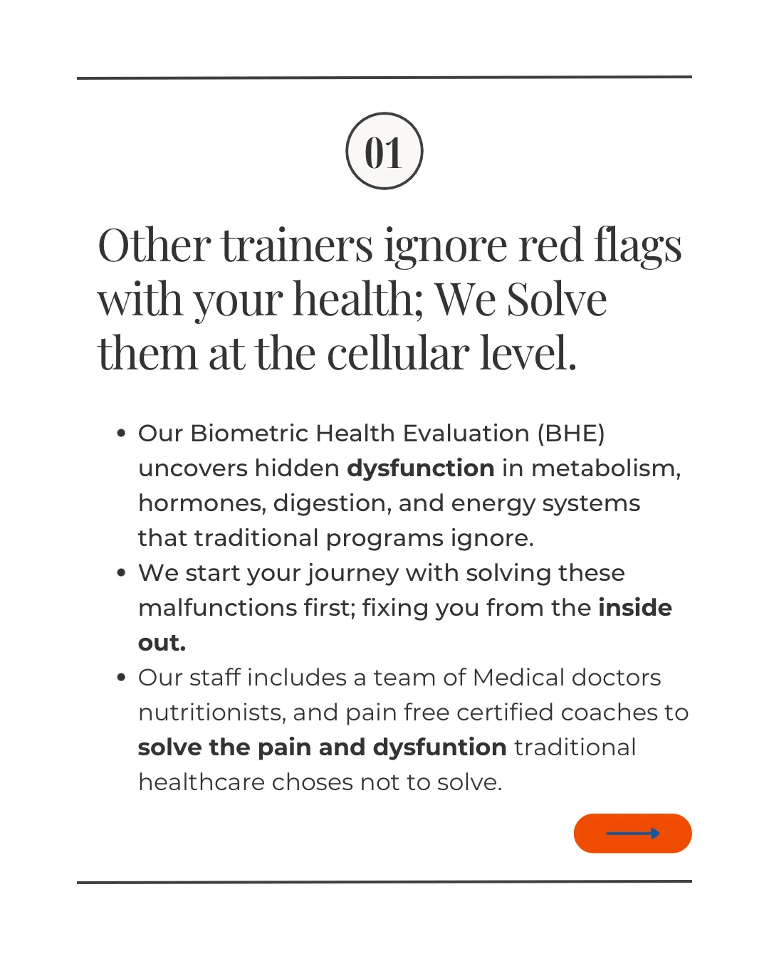 Our BioMedical support on functional health in your Metabolism, gut, hormonal health, and male/female health markers- so you don't just look better, but feel better inside out.